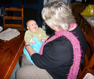 Grandma L certainly has a way with little boys - apart from bringing them fantastic knitted presents she's clearly the funniest thing! Andrew beamed and giggled away with Grandma last night!